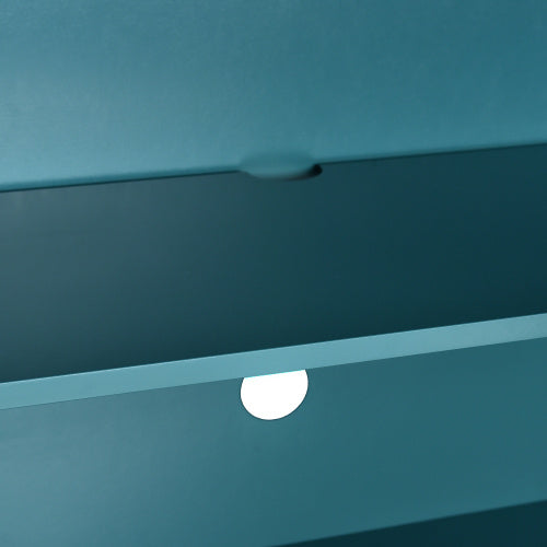 This sideboard helps homeschool families keep learning spaces organized by storing worksheets, art supplies, science kits, books, and manipulatives. Clear, accessible storage supports smoother lessons and reduces time spent searching for materials. The adjustable shelves accommodate a variety of items—from standard textbooks to craft materials—while concealed doors help maintain a tidy study area and minimize distractions during lessons. The antique blue finish adds warmth to the room, creating a welcoming environment that encourages kids to engage with their studies.