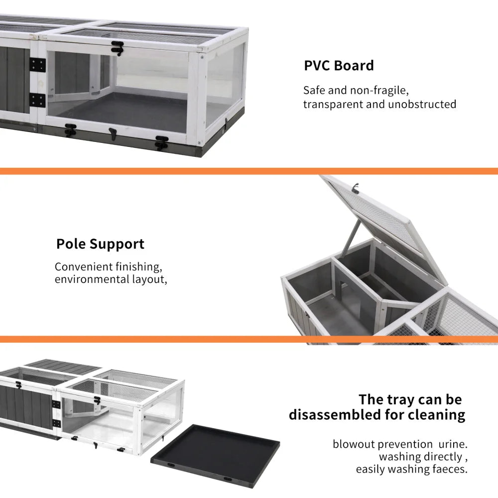 - Size and layout: 43.1 x 24 x 12.8 inches, two-room design that provides a spacious run area for pets to roam, play, relax, and sleep.