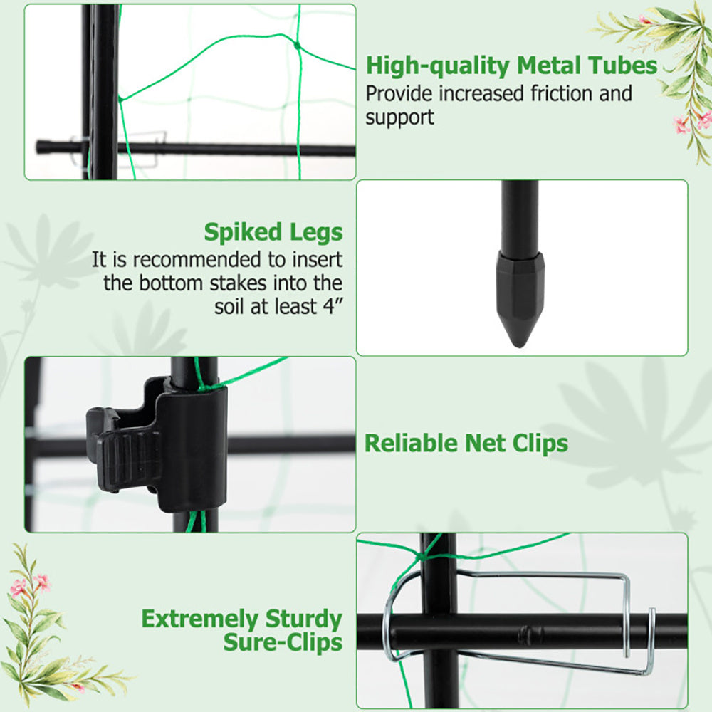 - Stable structure: U-shaped frame secured with sure-clips and spiked legs that anchor deeply into the ground; textured tubes provide added friction and plant support.