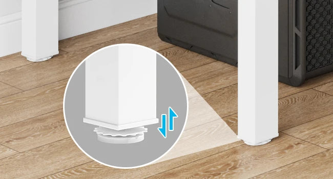 - Adjustable foot pads help keep the desk stable on uneven floors, protecting floors and ensuring a steady writing and typing surface.