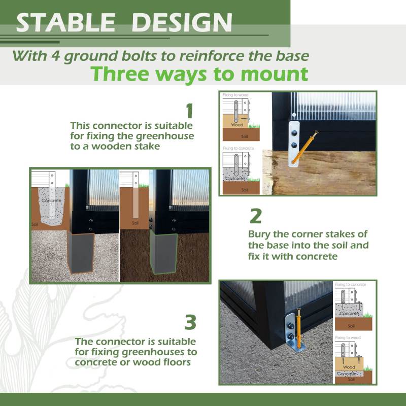 - Panels: heavy-duty polycarbonate panels for clarity and insulation