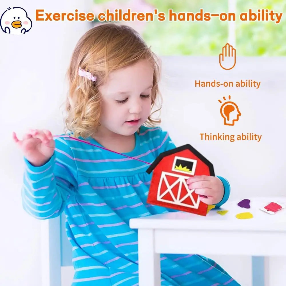 - Safety with pre-punched holes and included plastic needles, making threading and sewing safer for young beginners.