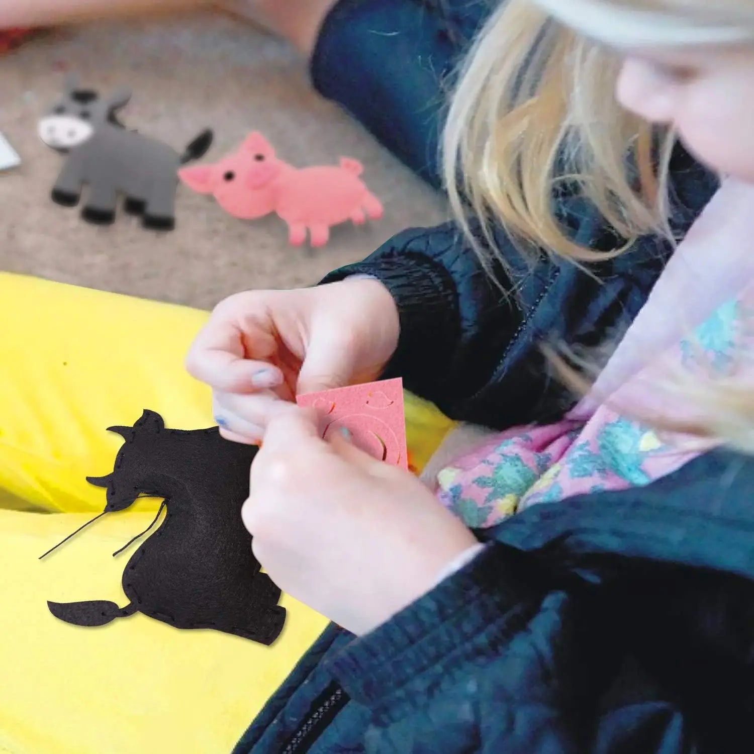 - Develops fine motor skills, concentration, and perseverance as kids stitch pieces to complete their felt animals.