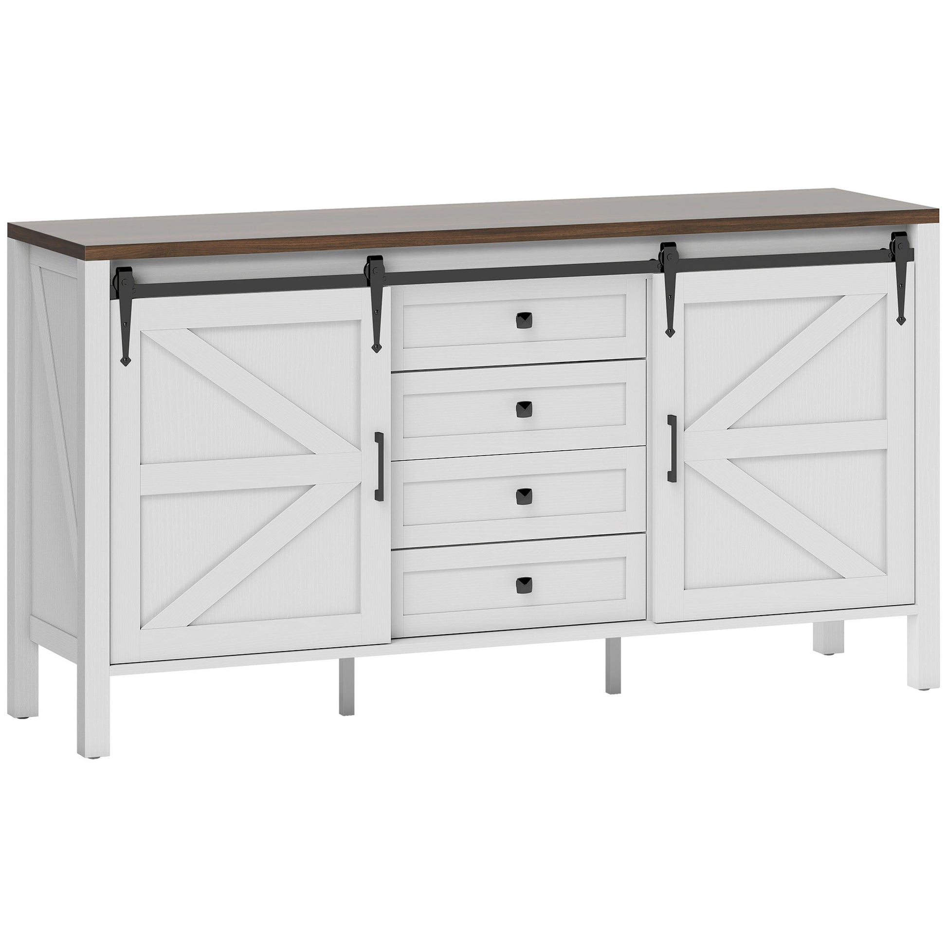 Designed to support homeschooling spaces, this sideboard helps keep learning areas organized, so kids can focus on tasks without distractions. The large top surface serves as a convenient command center for morning routines, project planning, or a quick display area for maps and reference materials. The three-level adjustable shelves inside the cabinets adapt to different curriculums—storing textbooks, science kits, math manipulatives, art supplies, and reading materials with ease. The sturdy build and tipping-resistant design provide safety and reliability in busy family homes. A 4.9" gap underneath makes cleaning effortless, while the rustic doors and hardware bring a welcoming, functional style to any homeschool corner, kitchen, living room, or entryway. This cabinet supports flexible learning layouts and can grow with your curriculum needs over time.