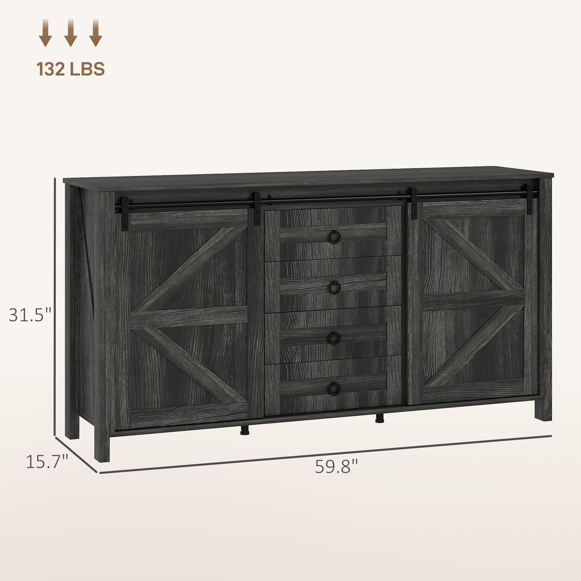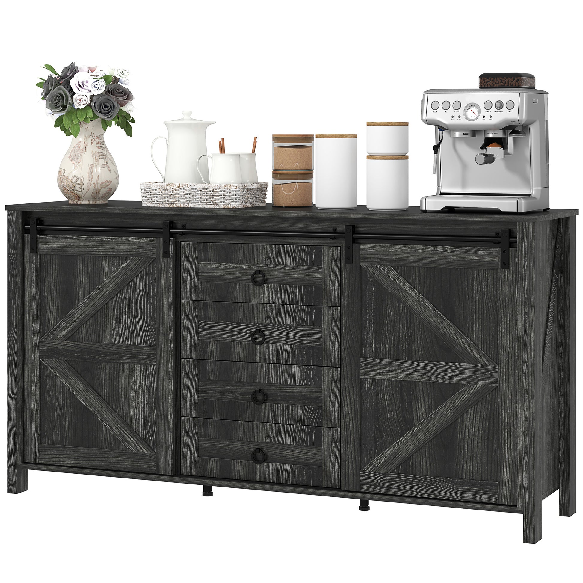 Farmhouse Sideboard With Sliding Barn Doors, Drawers & Adjustable Shelves