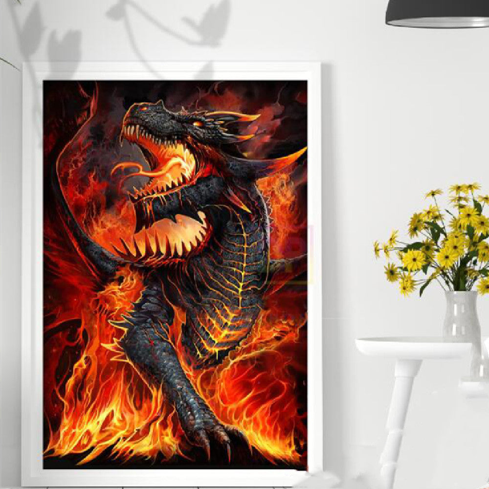 - Material: Canvas with a printed dragon design ready for diamond placement