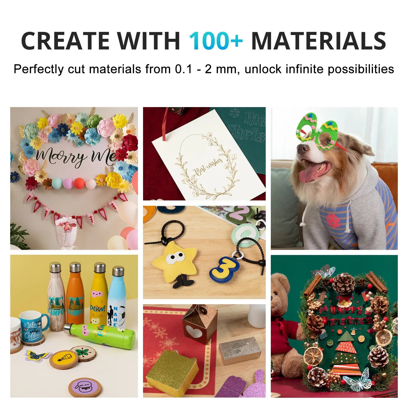 - Precision & Materials — built-in stepper motors and high-quality blades enable cutting through 100+ daily materials, from lettering films and sticky notes to cardboard, printable stickers, soft magnetic film, felt, faux leather, and more.