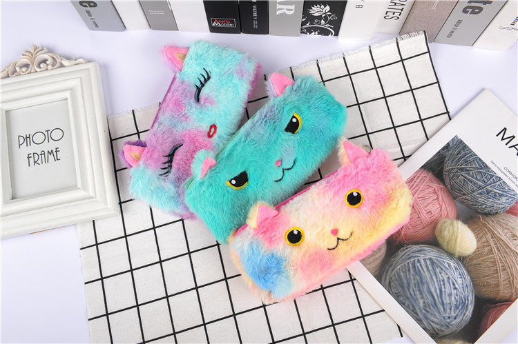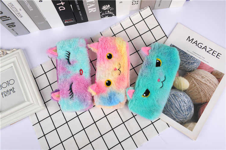 Laser color cat plush pencil case
