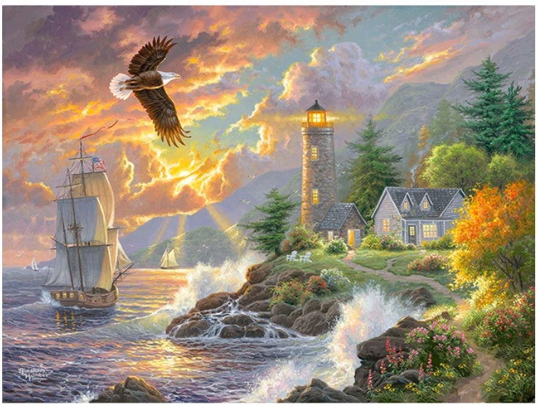Seaside Light is a DIY Paint By Number Kit designed for homeschool families and their kids who love hands-on art at home. This seaside landscape invites focus, creativity, and a sense of accomplishment as you paint together.