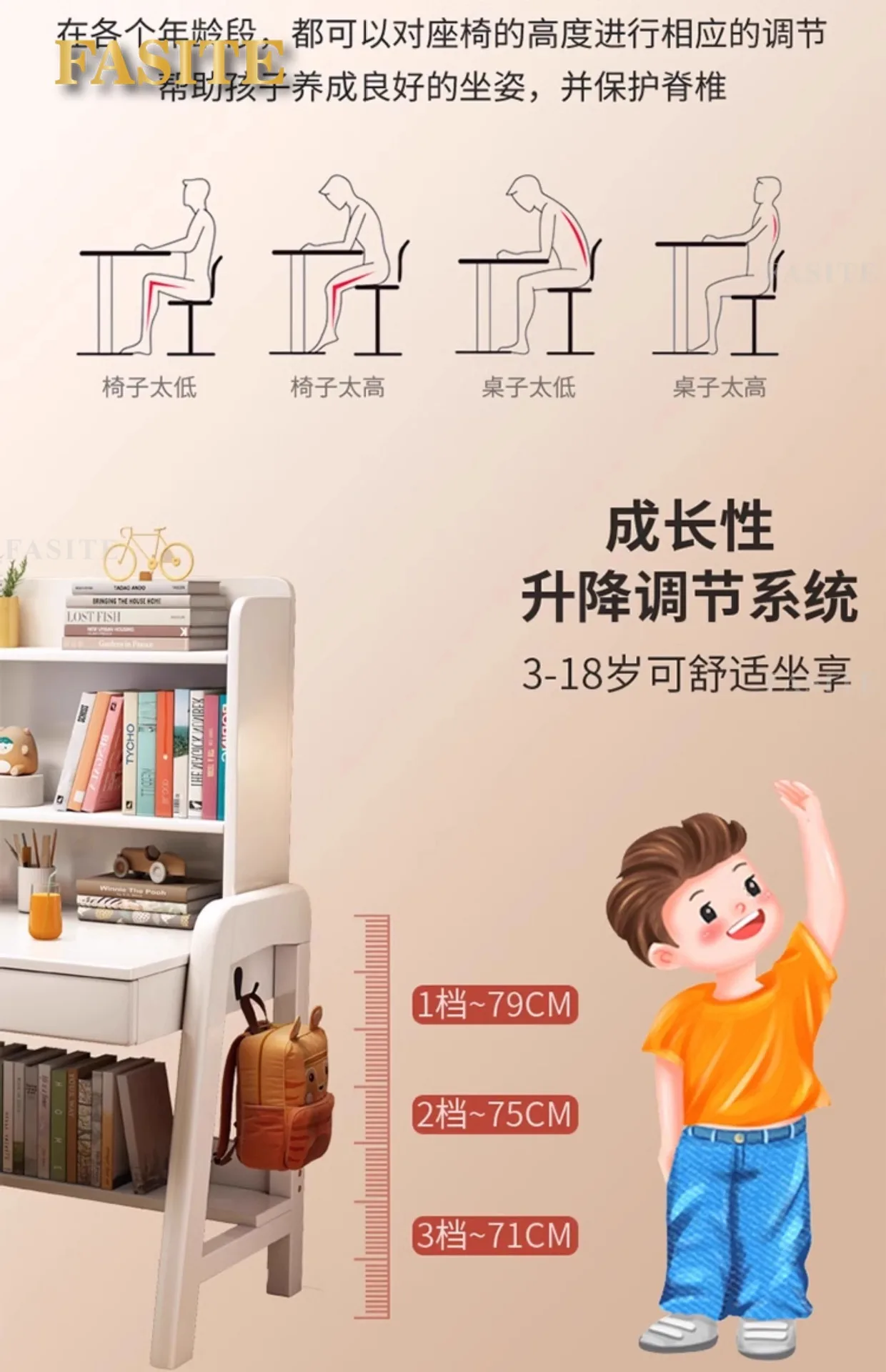 Solid wood desk bookshelf integrated with chair