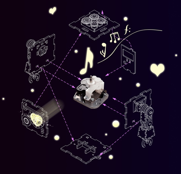 - Demonstrates cause and effect as the completed model emits music when the mechanism is activated.