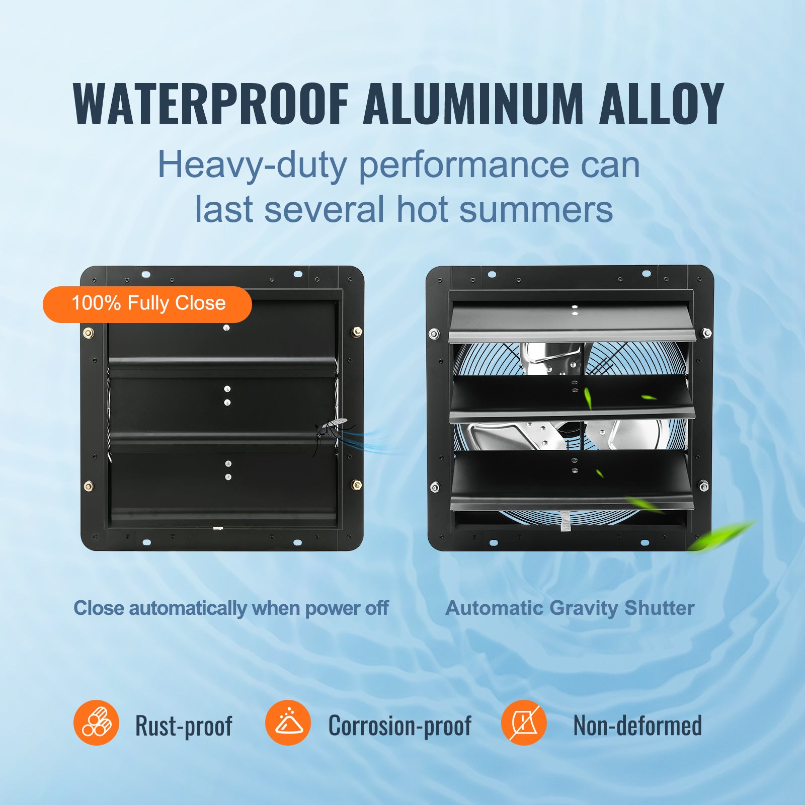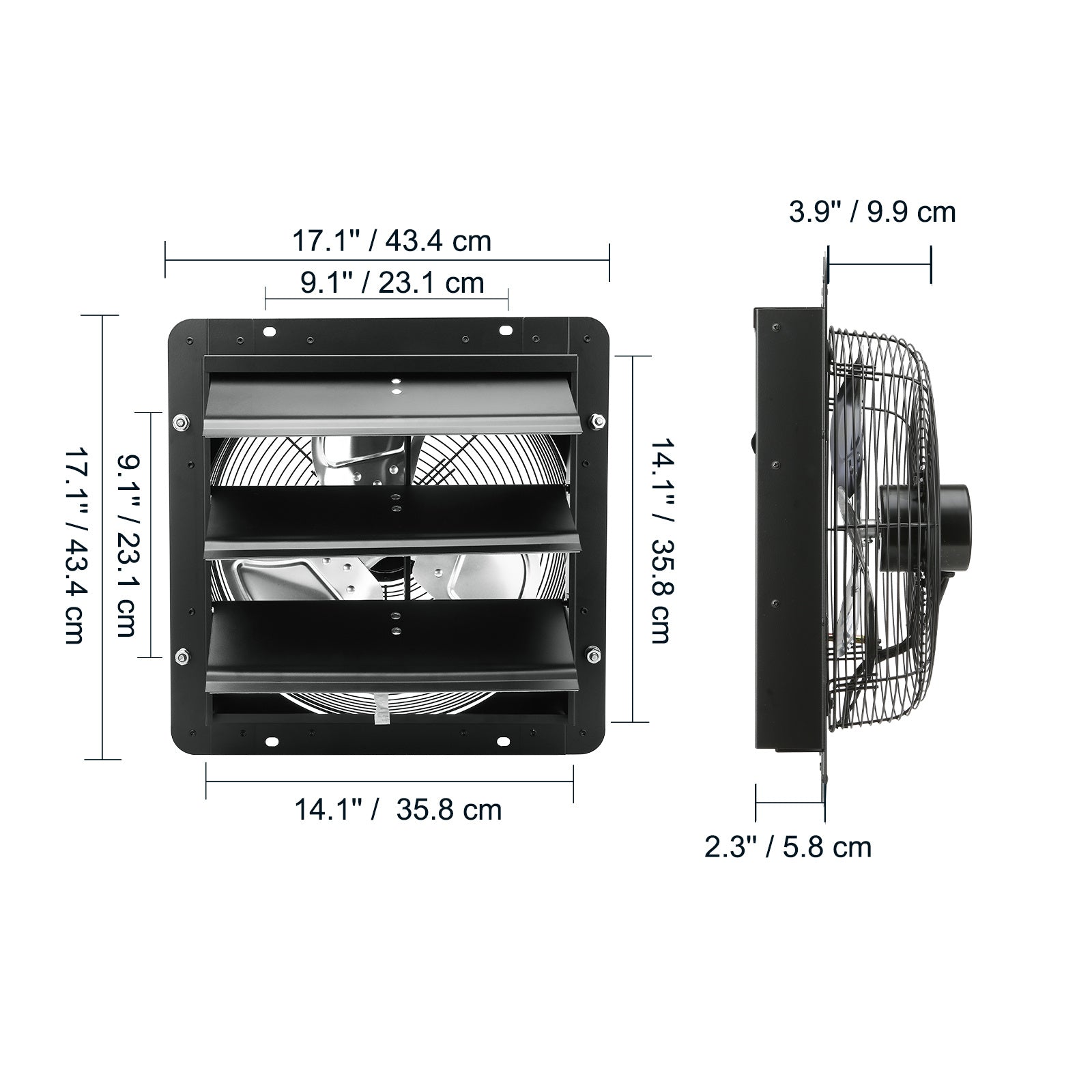 - 14-inch shutter exhaust design for effective airflow in greenhouses, garages, and sheds